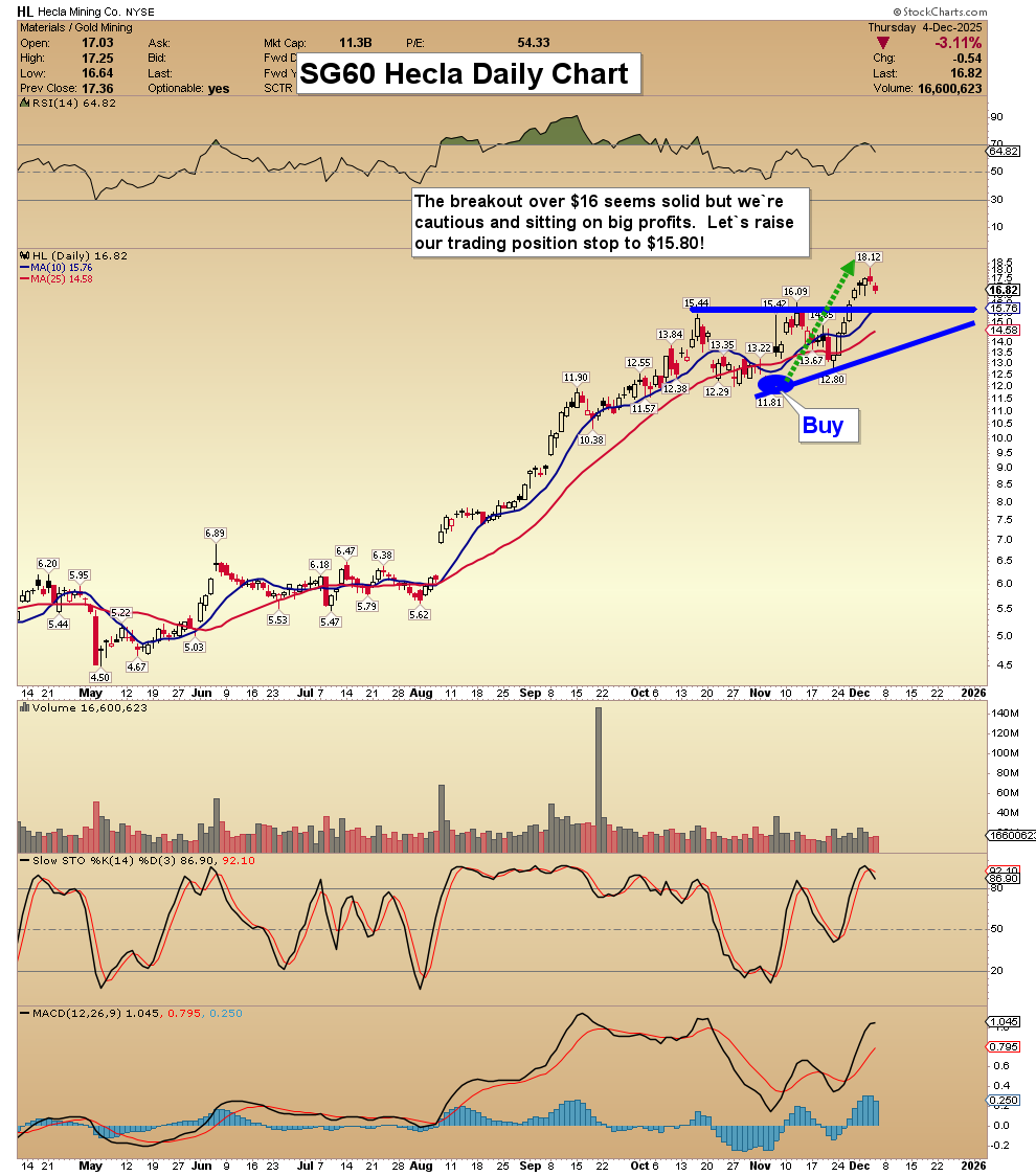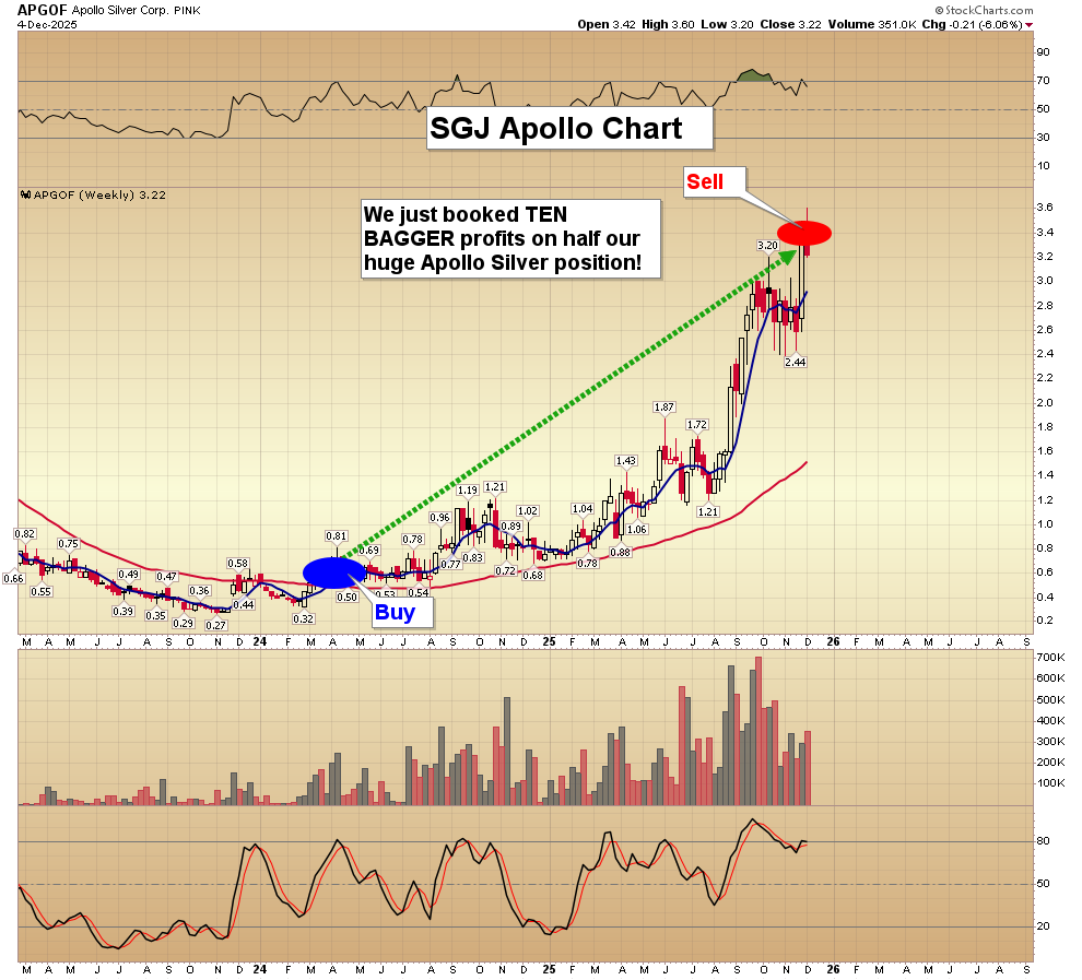 The junior miners are hot! We’re booking huge profits on some ten baggers and buying new prospective moon shots. To play the action my SGJ newsletter at only $249/year could be ideal. I’m doing a special offer of just $199 for 14 months, good through this weekend. Send me an email or click here or if you want the offer, and we’ll do it. Thank-you!