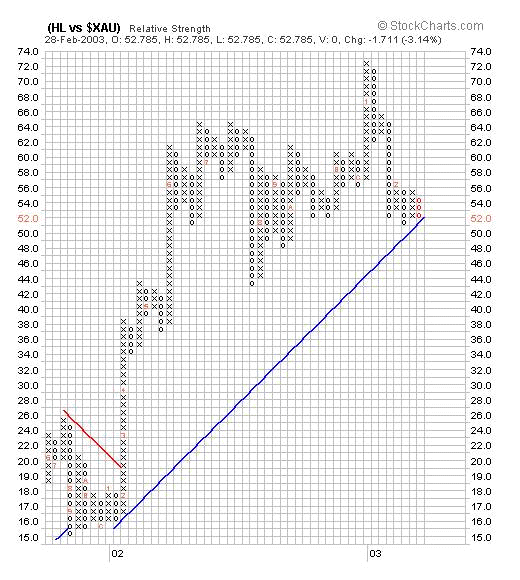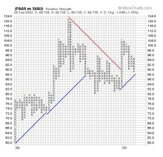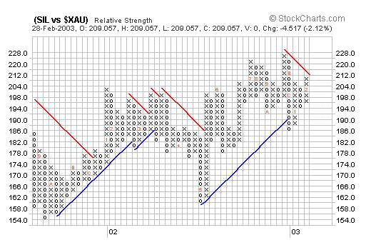 I looked at the RS charts of SSRI, HL, PAAS and SIL and here's what I found: (Courtesy Sharpcharts.com)