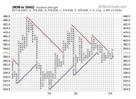 So I had a look at Newmont's relative strength chart and guess what? It is showing a very minor "buy" signal: