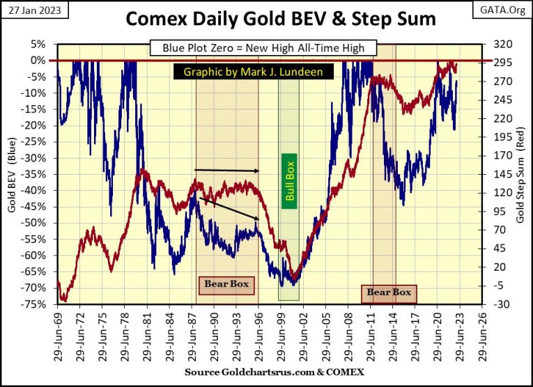 And as is so often the case with bear boxes, we see a markets’ expectations (step sum plot) and market reality (the price plot), turn up together at the start of a new market advance, as in 2001 for the gold market.