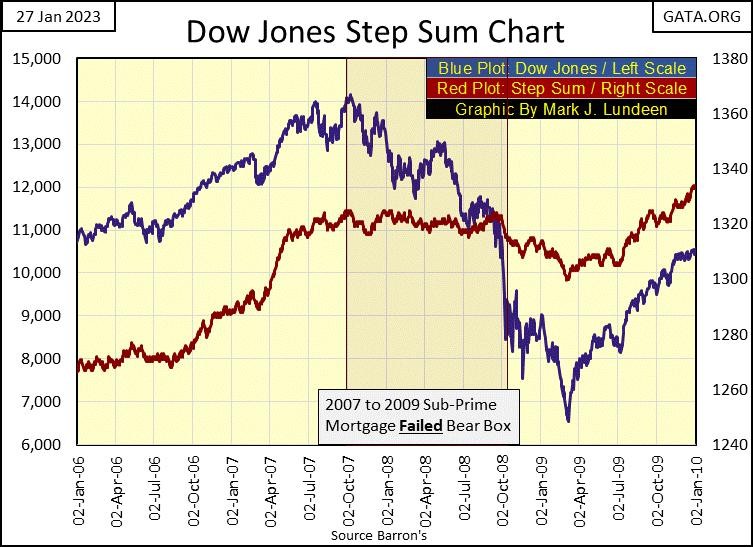 What makes the step sum box above a bear box, is the box took place during a market decline. Bull boxes occur during market advances. The rule of thumb during the duration of the box, is market reality is the superior predictor of the future, not market expectation. Not often, but sometimes this is not so.
