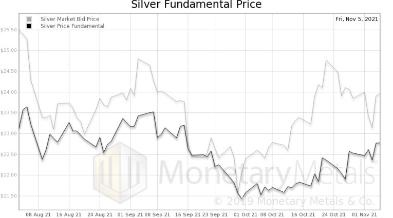 This is what the Monetary Metals Fundamental Price calculates. It is a model, of course, and so is subject to error. And there can be times of greater error, when the model’s assumptions are broken. “All models are wrong, but some are useful,” is generally attributed to statistician George Box. We have written why, post-covid, our fundamental model was to be taken with a grain of salt.