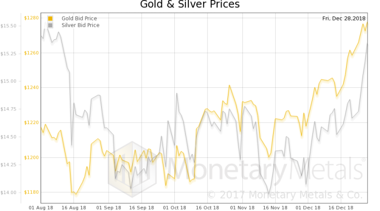 And unlike in gold, the Monetary Metals Silver Fundamental Price rose 68 cents, to $15.79.