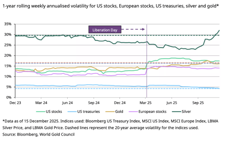 While gold’s volatility rose along with its 64 percent gain in 2025, it remained well below levels seen during previous periods of similar strong price performance. According to the World Gold Council, “This suggests that, despite recent price strength, gold has moved in an orderly manner.”