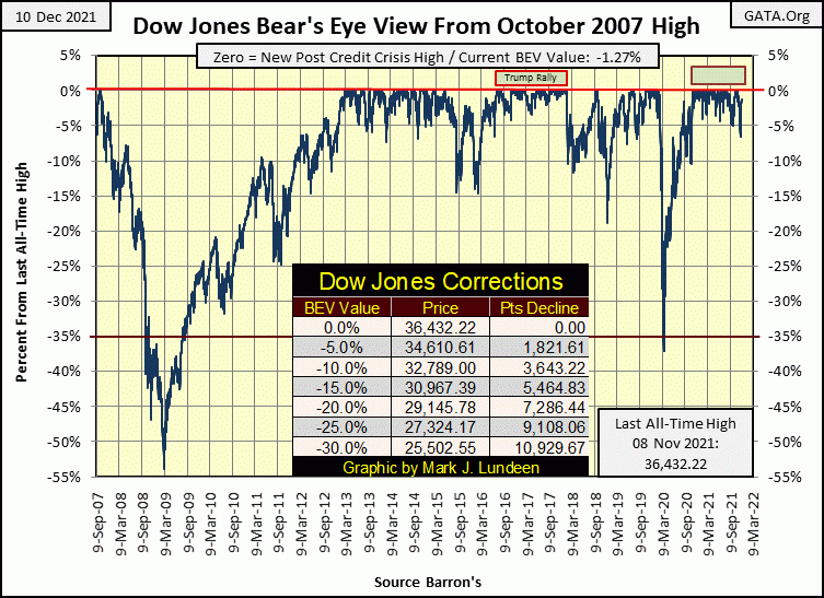 It was no different this week, when from out of nowhere dollars began flowing into the market, reflating market valuations for as far as the eye could see. From its lows of December 1st, the Dow Jones’ valuation was reflated by just over $1,900, in only seven NYSE trading sessions, closing the week with a BEV value of -1.27%.