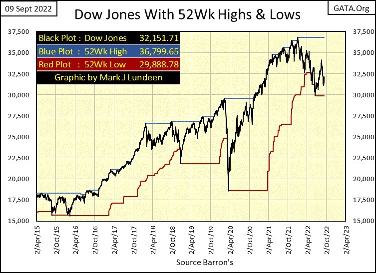 That plus, it’s been nine months since the Dow Jones made its last 52Wk high, which was also its last all-time high. So, is the Dow Jones fated to once again push its 52Wk line upwards again, which as a bull one must be expecting. Or, in early January of next year, is the Dow Jones 52Wk line destined to once again begin falling down towards the deflating Dow Jones, which is the bear’s view of the market.