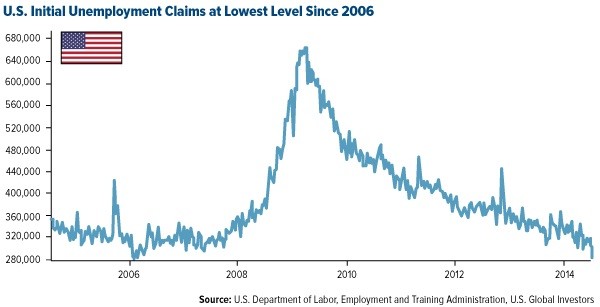 According to last week’s data reports, initial unemployment claims fell to their lowest level since 2006, before the Great Recession brought the country to its knees.