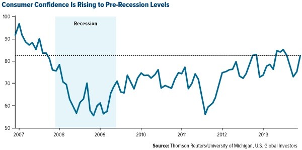 The results of the Michigan Consumer Sentiment Index echoes the buoyancy of the domestic economy. At 81.3, the index is finally stabilizing at pre-recession levels.