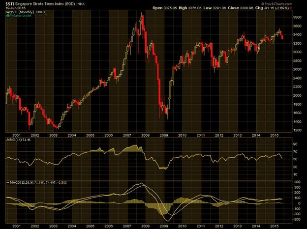 And although the Shanghai Index is forecasting an impending Bear Market, it is not alone. We also see Asian bears emerging in the Hang Seng Stock Index of Hong Kong, Shenzhen China Stock Index and the Singapore Straits Times Index…likewise all displaying peaking patterns…of nascent Bear Markets…as they all did in 2001 and 2007.