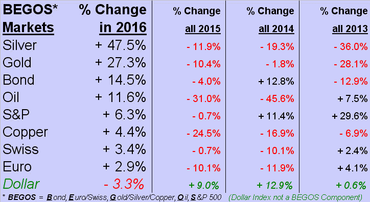 So: we may already be tradin' December Gold, but having only made it through July, here are our seven months year-to-date standings of the BEGOS Markets, with Silver and Gold leading the fold: