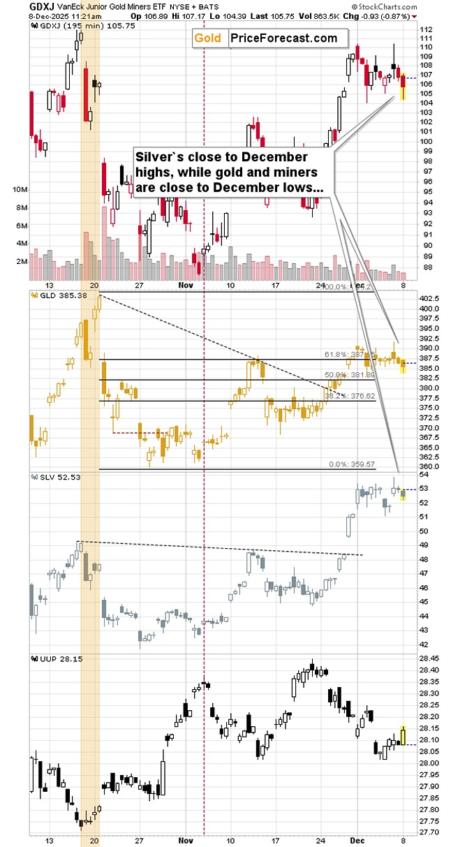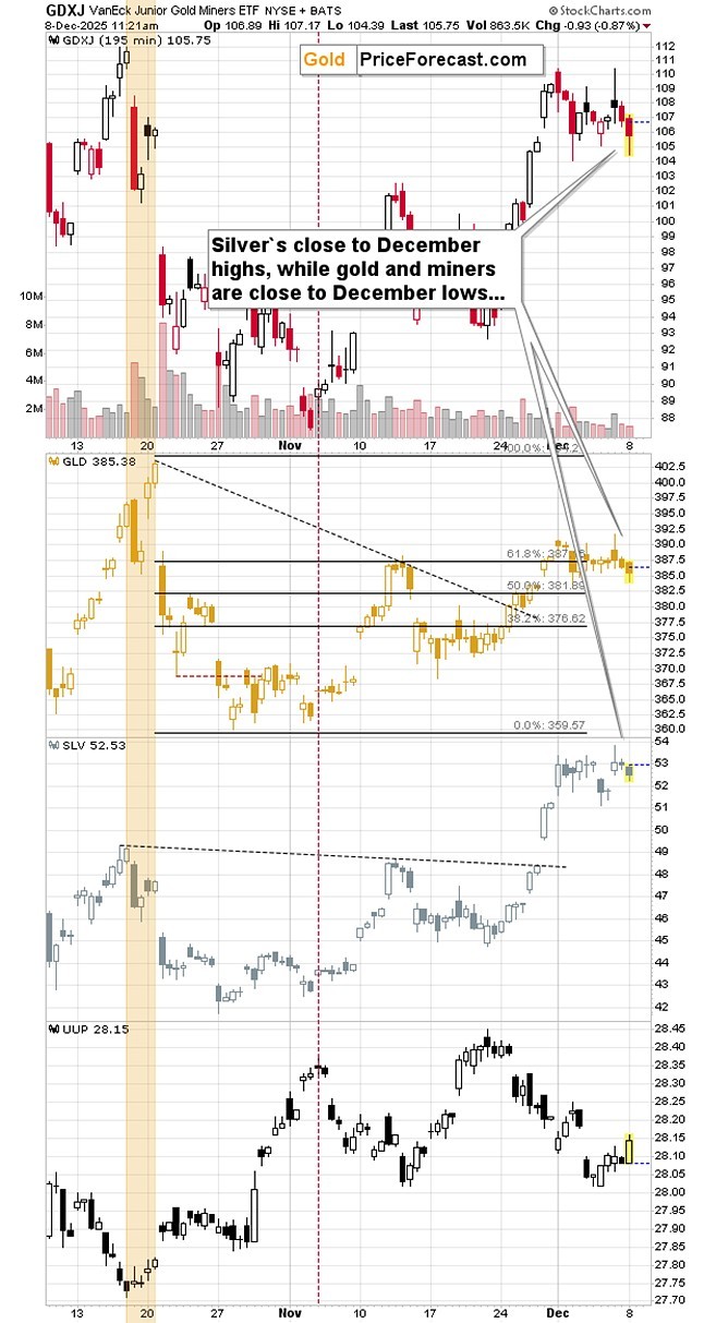 When (not really ‘if’) the USD Index moves higher, it seems that gold and miners will react with declines, but this might be the case with silver only to a limited degree.