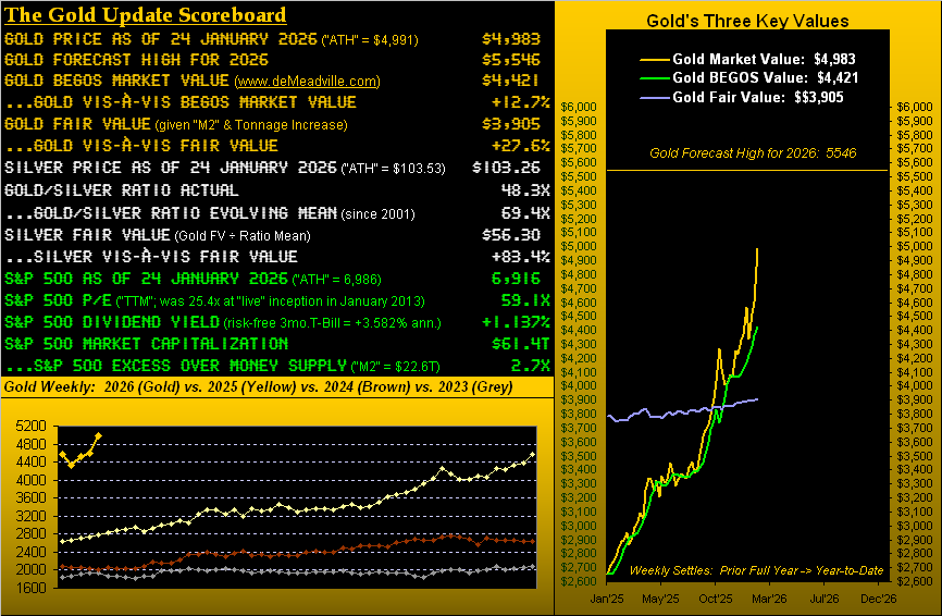 All that said, as we wave the Gold flag for 5546 in 2026, we love having Sister Silver participate.  But should the precious metals en route take a bit of a bath — let alone a beating — bear in mind their respective Fair Value levels per each weekly missive’s opening Gold Scoreboard.