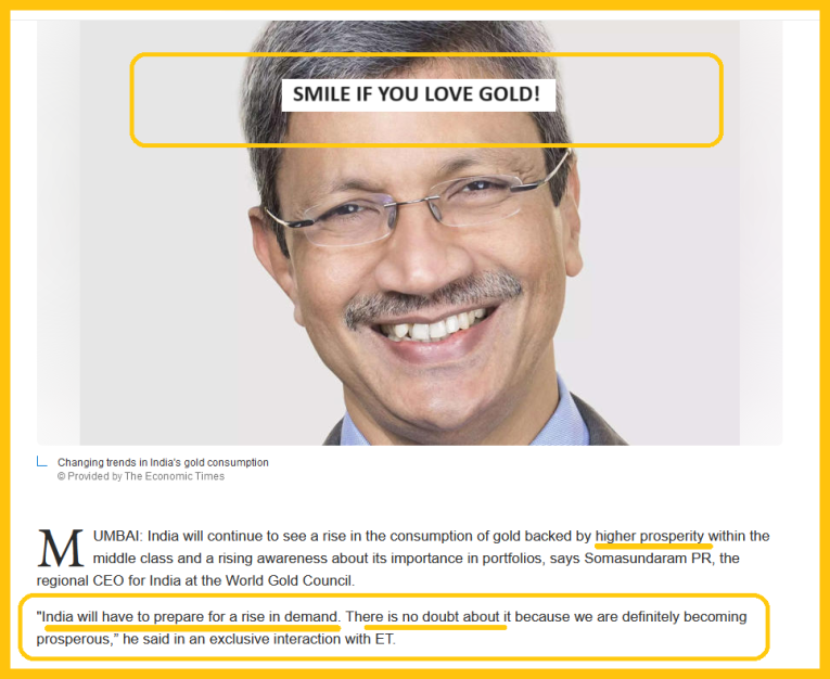 The smile is Somasundaram’s, and the caption is mine: Smile, if you love all that is gold!
