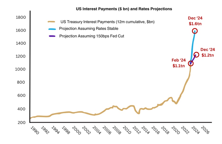 This is real. BofA’s own data confirms that Uncle Sam is looking at $1.6T in interest expense payments by year end if Powell doesn’t cut rates soon.
