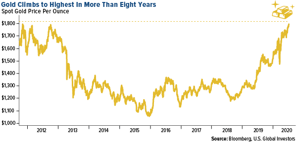 · The best performing precious metal for the week was silver, up 4.25 percent. Investors poured money into silver-backed ETFs this week as the precious metals trade begins to increase in scope. Spot gold prices reached the key $1,800 an ounce level. This milestone could help push the metal closer to its all-time high above $1,900. Bloomberg notes that gold futures traded almost as high as $1,830 an ounce this week.