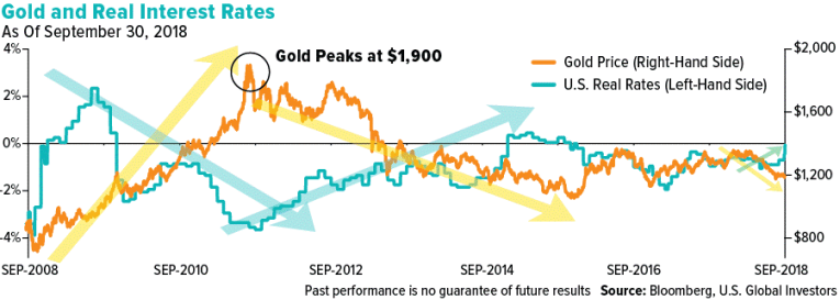 If real interest rates rose steadily above the psychologically important 2 percent threshold, we believe it could have a negative effect on the price of gold. That’s because in a high interest rate environment, gold and silver lose their luster as stores of value.