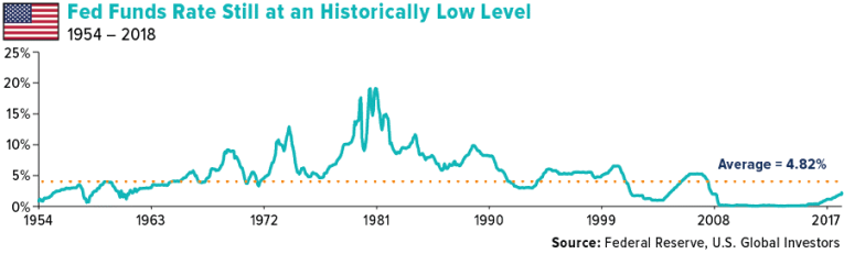 Historically speaking, rate hike cycles have mixed results. Only three such cycles in the last 100 years have not ended in a recession according to Incrementum research. There is no guarantee that this current round of tightening will have the same outcome, but the risk should be recognized, especially since another rate hike may occur in December of 2018.