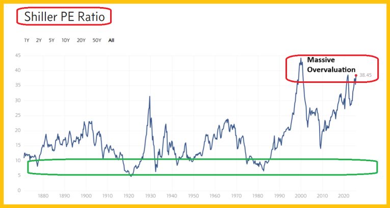This is the US stock market valuation (Shiller/CAPE ratio) chart. Clearly, investors need alternatives to this wildly overvalued market… a market that could be poised to swoon like it did in 1966 and 1929.
