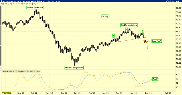 The recent peaks and troughs for the stock market are in sync with the peaks and troughs for the price of oil. If oil can’t rise with Iran being pounded by US government sanctions, something is wrong.