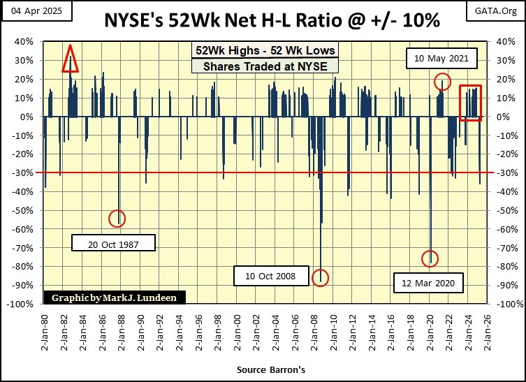 Back to the chart above, seeing a NYSE 52Wk H-L Ratio of -36% at this week’s close, suggests the market is due for a bounce, sometime in the next week or two. But note; ALL MAJOR BEAR-MARKET DECLINES HAVE BULLISH REBOUNDS, bullish advances that draw in the unwary, that will soon regret coming back into the market.