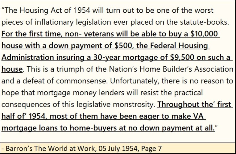 There is a reason why there are so many homeless people in the United States. In 2025; American politicians have had their meat-hooks set deep into the mortgage system for many decades, as seen in the Barron’s quote from 1954, below.