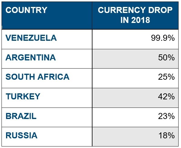 But these are just some of the worst ones. The currency collapse is spreading like wild fire. High inflation and hyperinflation is hitting country after country. Here are some more countries with collapsing currencies in 2018: Sudan -61%, Angola -39%, Liberia -18% and India -12%. The list goes on. There are at least another 15 countries whose currencies have lost 10% or more against the dollar in 2018.