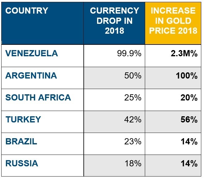 Venezuela is a clear basket case with the currency worthless. But with a gold price at 300 million Bolivars, any Venezuelan who owned a bit of gold from the beginning of this year or even better for a few years, would not be in the desperate situation that almost everyone is in currently.