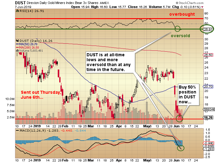 I will be adding to shorts on Monday on any type of bounce in both the GLD and the miner ETF’s; the DUST was bought at the $16.47 and $15.90 for an average of $16.18 and will probably open in the low $17’s on Monday.