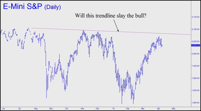 Traders looking to survive the deadly tedium of this market ought not to begin or end their day with a strong opinion. Although bears who smell a nasty top have ample reason to bet the ‘don’t pass’ line whenever the moment feels right, they should hold no illusions that a bull market now in its eighth year is going to roll over and die simply because some formerly reliable technical indicators say it’s time. Nor with a world endlessly awash in funny money can we count on lousy earnings to deliver the coup de grace. It should be clear to everyone by now that the hacks, scoundrels, cheats and mountebanks who are paid princely sums to throw Other People’s Money at stocks are not swayed by the ominous, downward drift of corporate earnings. Yes, it is outrageous that despite this the broad averages sit within a three-day rally of all-time highs. We disregard this development at our peril, but that doesn’t mean Mr. Market cannot continue to thumb his nose at reality for as long as it suits his cruel designs.