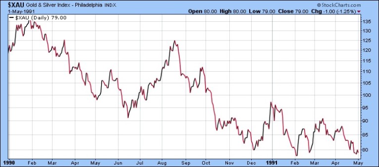 To be sure the Desert Storm War had an adverse effect upon the precious metals stock index XAU, which fell -36% in less than 4 months (August to December as Desert Storm War raged).