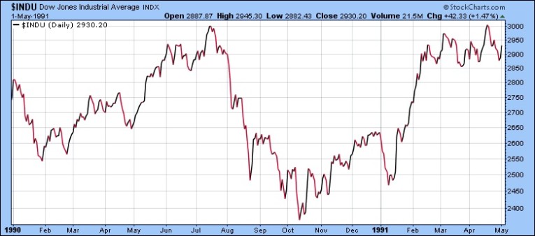 Therefore, if a Syrian war materializes, and there are 1990-1991 déjà vu results, the DOW Index might be hammered down to support at 12500.
