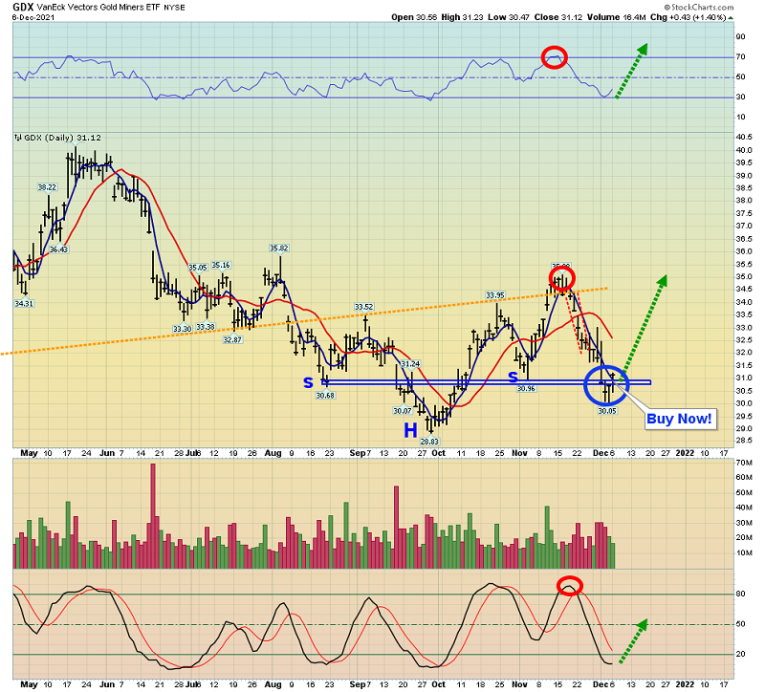 The enticing GDX daily chart. Note the incredibly positive positioning of numerous oscillators.