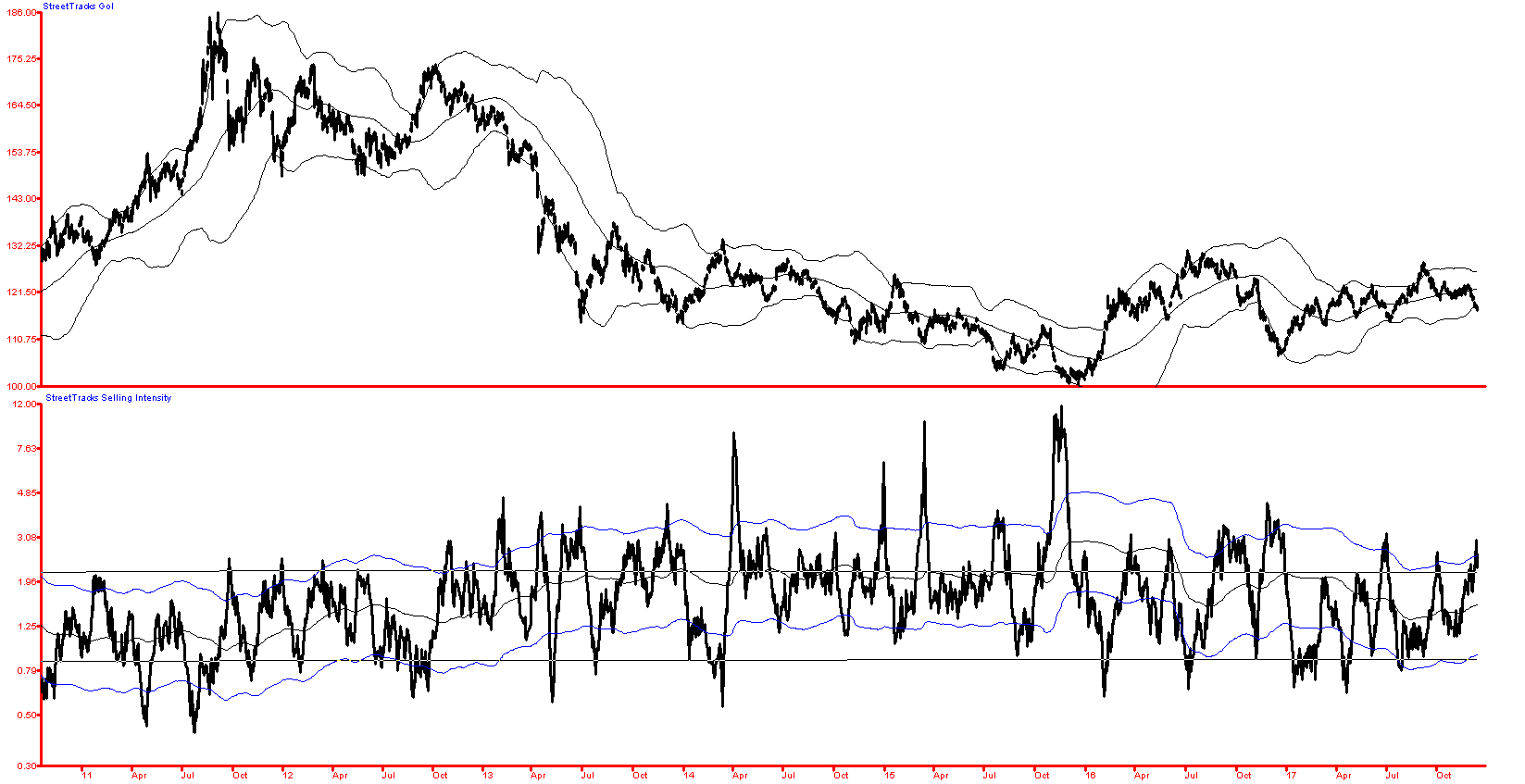 Finally, we also point out that the Selling Intensity Index for gold is high (oversold) showing fear, but is also not among the highest values of the last few years. Again, for a potential significant inflection point in the larger pattern, these readings are modest. While we can make a case that we could be near a low, at the moment, prices are in a clear near term down trend and we would need to see something that looks like a credible base develop from here, where downside momentum begins to dissipate before we get really bullish. Essentially, we would need some real evidence that the short term trend is changing from down to up and right now, gold is still soft.