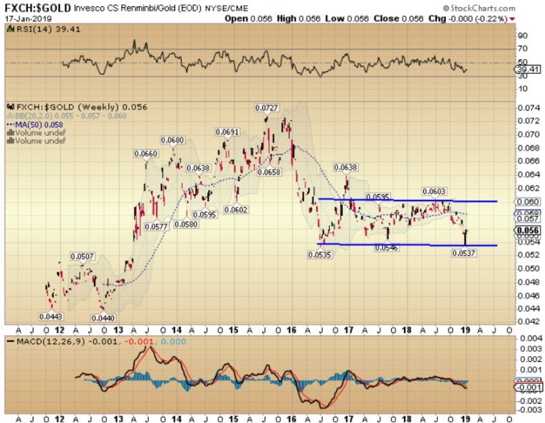 Renminbi Volatility versus Gold - Last October in ‘As Good As Gold’ I referenced China’s long-term intention to replace the United States as the world’s global superpower. China has a lot of work to do. As part of the process, China needs to provide an alternative to the US dollar as the world’s reserve currency. China is making some progress in this regard. Since 2016, renminbi volatility versus gold has declined sharply and in recent weeks, the currency has rallied sharply relative to gold.