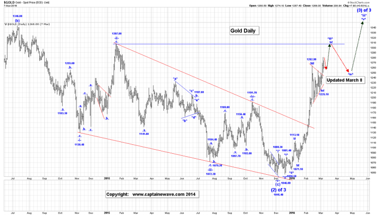Based on the current count, gold is still working on its first impulsive sequence out of its wave (2) of 3 low, and we still have a long way to go before this sequence is complete.