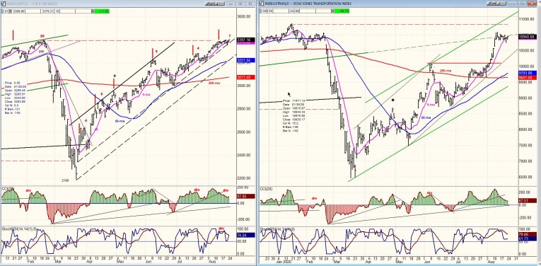 SPX-TRAN daily charts: