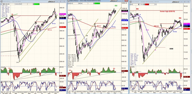 SPX-TRAN-IWM daily charts: