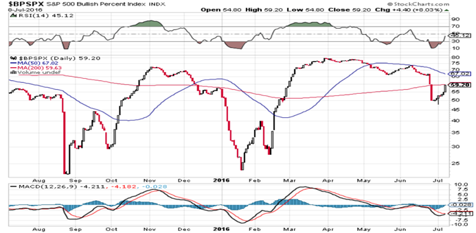 Here is an updated version of the same chart (courtesy of StockCharts.com): As you can see, it has somewhat improved, but it has only gone from about 52% to 59%, which leaves it showing extreme divergence with its 80% high of April, and the more recent 67% before the Brexit plunge.
