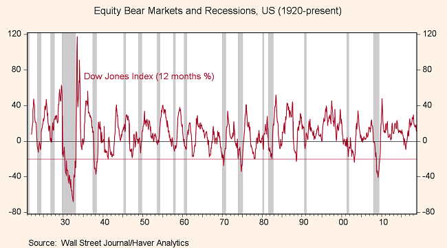 In the US, most analysts agree that bear markets and domestic recessions have generally been fairly closely related, though the exact leads and lags between the two may differ considerably across cycles. Furthermore, there have been several bear markets, notably in 1987 and 1978, that have not been accompanied by recessions, and vice versa.