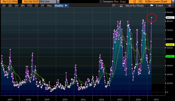 - “The Fed and the ECB have decided to address the issue of debt by slowly confiscating value from investors via negative rates…ZIRP [zero interest-rate policy] and QE as practiced by the Fed and ECB are not boosting, but instead depressing, private-sector economic activity. By using bank reserves to acquire government and agency securities, the FOMC has actually been retarding private economic growth, even while pushing up the prices of financial assets around the world.” – Christopher Whalen, Kroll Research, 3/23/15