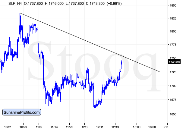 The white metal has indeed shown strength by rallying back to the rising resistance line and the 50-day moving average. It almost moved above the early-December high on Friday. It finally managed to break above it in Monday’s pre-market trading.