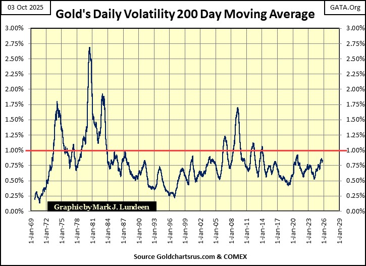 Also, gold’s daily volatility’s 200D M/A is only 0.82%, which suggests this isn’t panic buying at all, but the constant, and disciplined flow of funds from other areas of the market, into gold. When gold’s daily volatility 200D M/A (chart below) increases to something over 1.0%, then we can begin discussing the mindless, panic buying in the gold market.