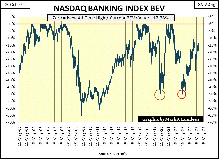 That was actually pretty good, when compared to the NASDAQ Banking Index’s BEV chart below. This week, these banks found themselves at the bottom of both the BEV, and performance tables below. This banking index saw its last all-time high in November 2021, almost four years ago, and have been underperforming the broad-stock market since then.