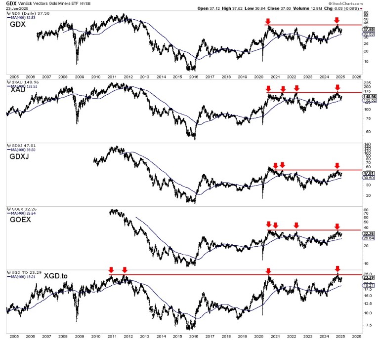 Finally, multiple gold stock ETFs and indices are in a position to break out this year.