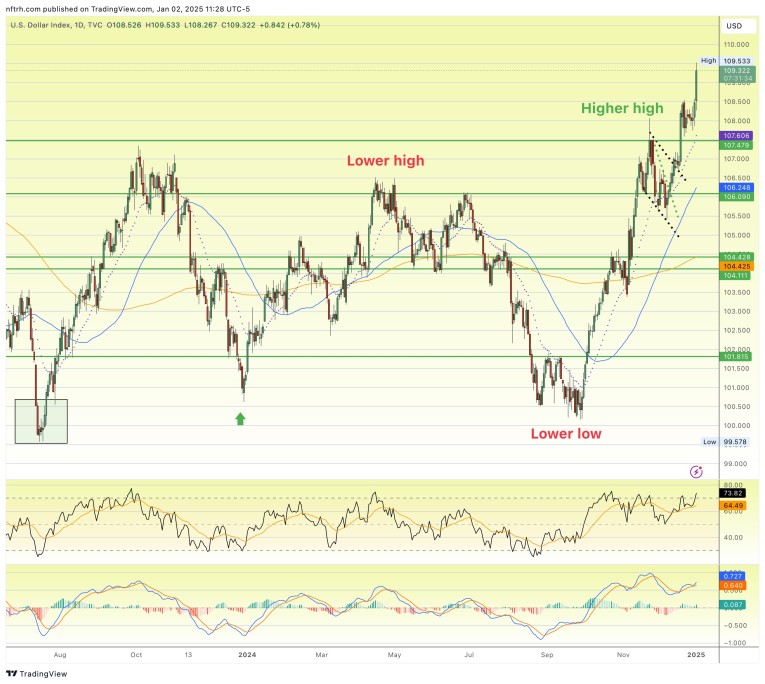 USD furthers its base breakout.