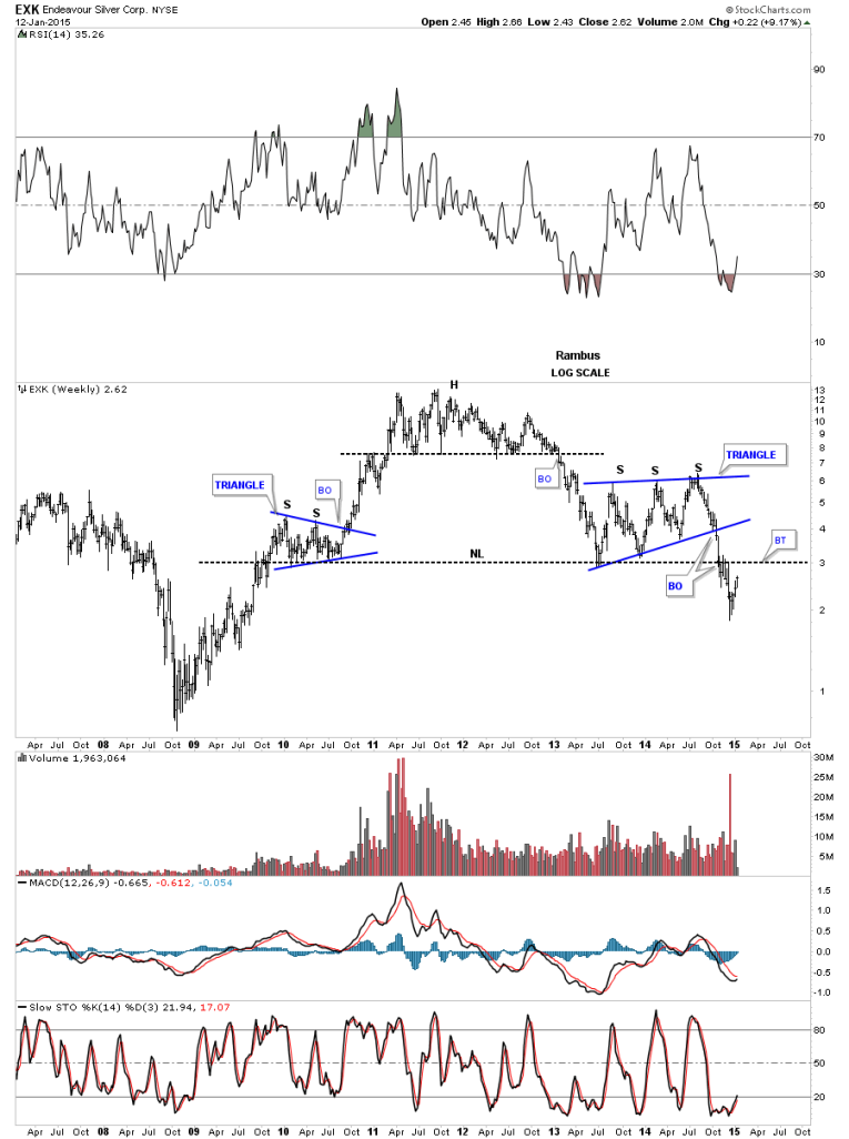 EXK looks like it to is in the process of backtesting its potential multi year neckline.