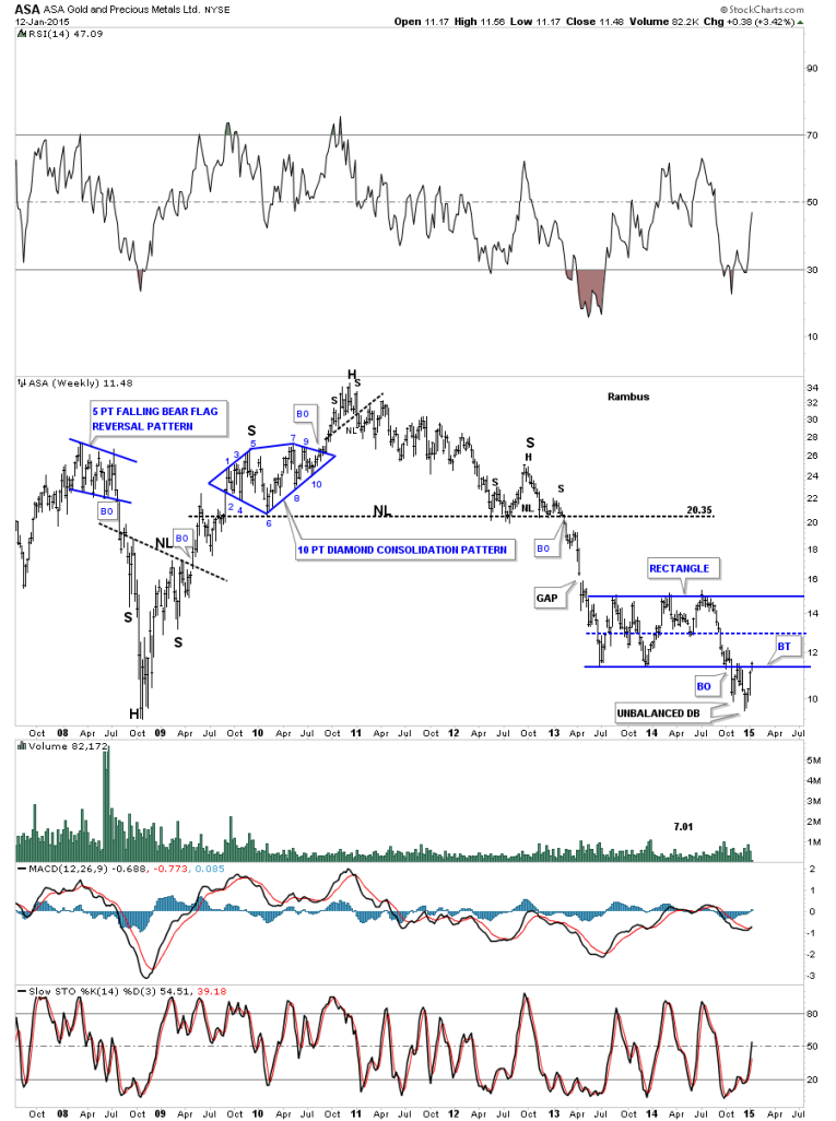 ASA is showing some strength by closing back above the bottom rail of a well defined rectangle.