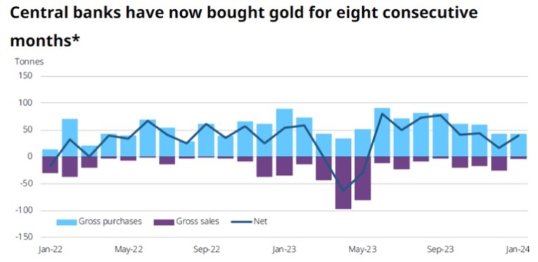 Remember that a big reason for the gold price doing so well of late is the expectation of three 0.25% interest rate reductions by the Fed, likely starting in June.