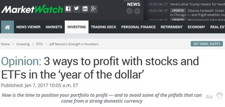 The media has decided that the single bets investment going forward is the US Dollar. Indeed, Marketwatch has proclaimed that 2017 will be “The Year of the Dollar.”
