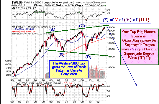 There is a stock market pattern that has been in formation for 23 years, which is finishing now. This pattern is a Broadening Top pattern, which I have dubbed the Jaws of Death pattern. It has appeared eight previous times over the past century, and each time has led to an economic decline upon completion. It is showing up in the Dow Industrials, the Dow Transportation average, the Wilshire 5000 (which is essentially the entire U.S. stock market), and in the Dow Jones Euro STOXX 50 average.